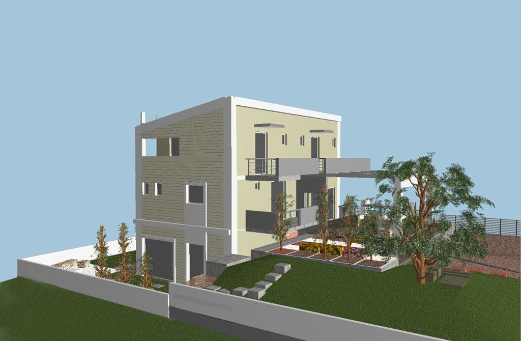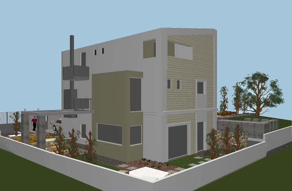• Μελέτη διώροφης κατοικίας με μονόκλινη στέγη σε μοντέρνο στυλ