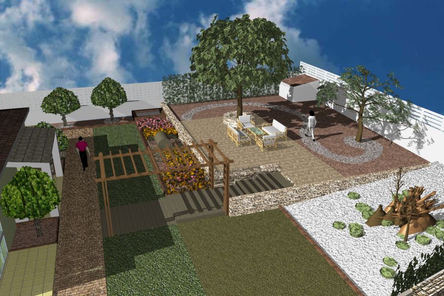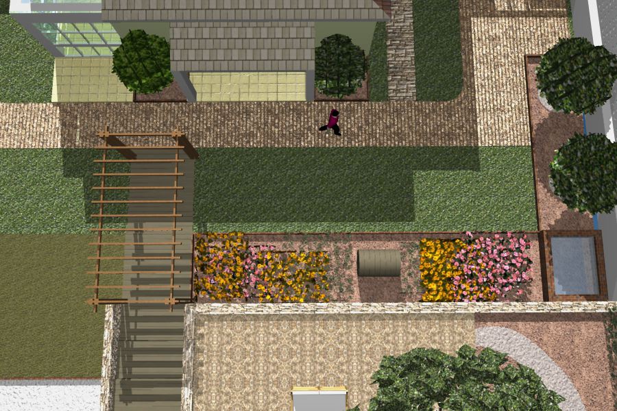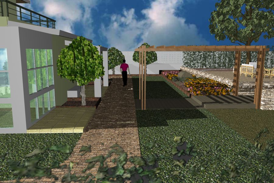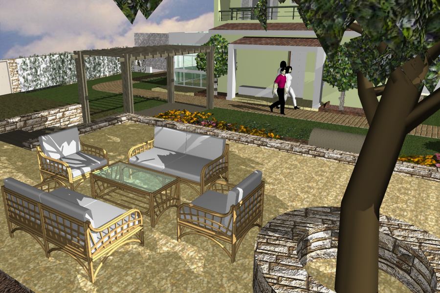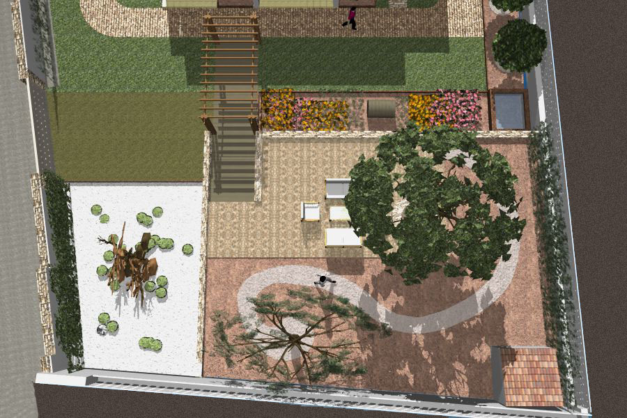 • Διαμόρφωση αύλειου χώρου διώροφης κατοικίας